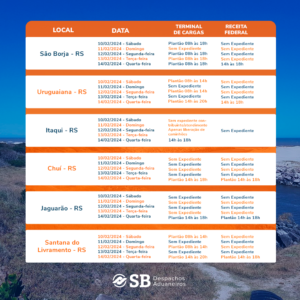 Confira os horários especiais dos terminais e aduanas durante o feriado de 10 a 14 de