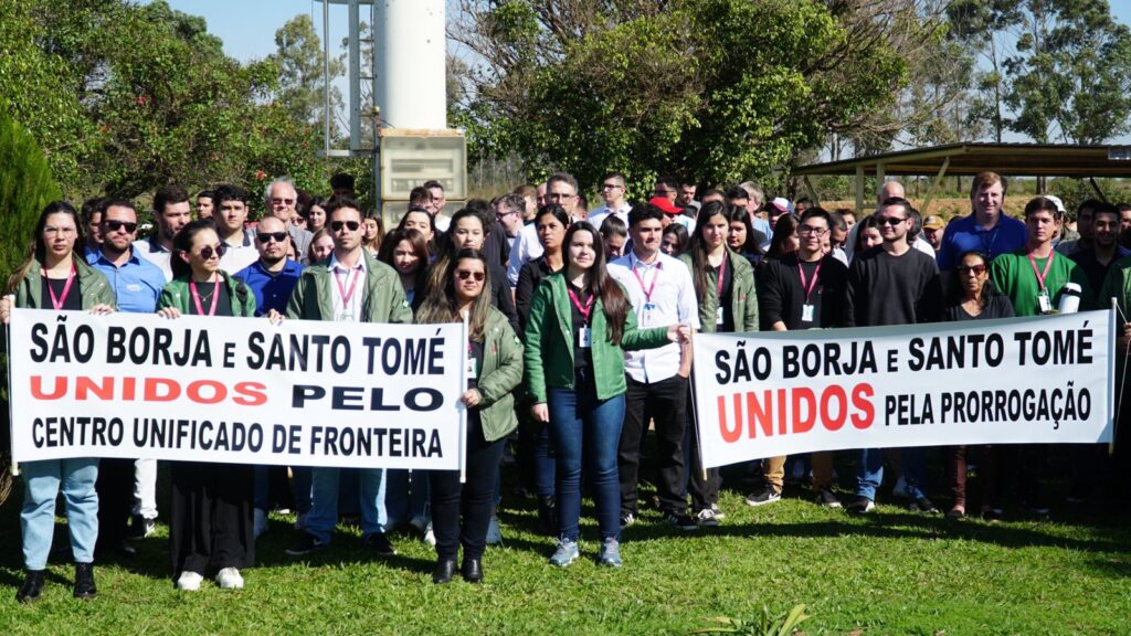 Hoje pela manhã, diante das bandeiras do Brasil e da Argentina, próximo ao prédio administrativo da DELCON aconteceu uma manifestação pacífica. Brasileiros e argentinos, trabalhadores do Centro Unificado de Fronteira (CUF), motoristas, familiares e todos aqueles que serão diretamente ou indiretamente impactados pelos prejuízos decorrentes da indefinição sobre o futuro da concessão, uniram-se em prol de um único objetivo, soluções imediatas. A atual situação do CUF está cercada de incertezas, e a indefinição tem causado danos ao fluxo do passo fronteiriço, afetando centenas de pessoas e famílias que dependem diretamente desse porto. O ponto crucial para a resolução do impasse é o aceite oficial por parte do governo argentino. Outro apelo da comunidade e usuários do porto é direcionado à COMAB, para que instrua os governos a assinarem o aditivo para continuidade dos trabalhos a assinar um novo aditivo ao contrato com a atual concessionária. Essa medida temporária permitiria que o CUF continuasse operando sem maiores interrupções até que a situação seja definitivamente resolvida.